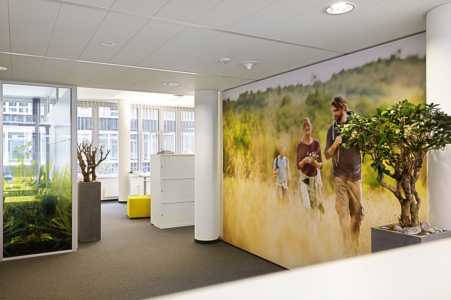 „Wir verbinden Menschen in Europa!“, so der Claim der Telekom seit 2015. Diesem Credo folgend sollen auch die Mitarbeiter noch besser zusammenarbeiten. Ein Beispiel hierfür sind die Telekom-Kaskaden im Technologiepark Rhein Main. Zur Entwicklung dieses Standorts nahm der Konzern einen beträchtlichen Betrag in die Hand, um für rund 1.300 Mitarbeiter zukunftsorientierte, kommunikative Bürowelten und ein Wohlfühlklima am Arbeitsplatz zu schaffen. Das Novum: Erstmals setzte das Unternehmen auf offene, flexible Arbeitsplatzstrukturen, die Projekt- und Teamarbeit in wechselnder Besetzung erlauben sollten. Auch die künftige Umsetzung von Desk Sharing war Teil des Konzepts.