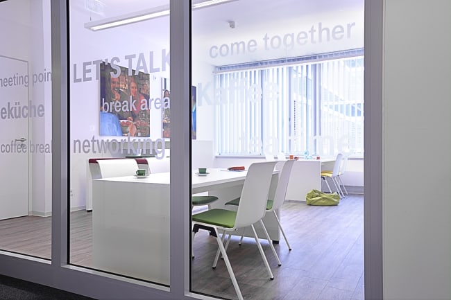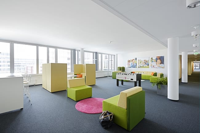 Um Rückzugsmöglichkeiten für konzentriertes Arbeiten und Meetings zu schaffen, realisierten wir rund 120 THINK.TANKS in unterschiedlichen Ausführungen – vom Einzelarbeitsplatz mit Schreibtisch und Drehstuhl bis zum Raum für Kleingruppen mit Besprechungstisch, Drehstühlen und Medientechnik.