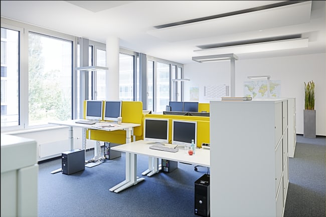 Gemeinsam mit der Firma Canzler entwickelten wir für die THINK.TANKS eine Sonderlösung des Lüftungssystems: Wir integrierten die Lüftungseinheit nicht in die Decke sondern in die opaken Seitenwände, um die THINK.TANKS ohne Abstand unter den bauseitigen Lüftungskoffer stellen zu können.