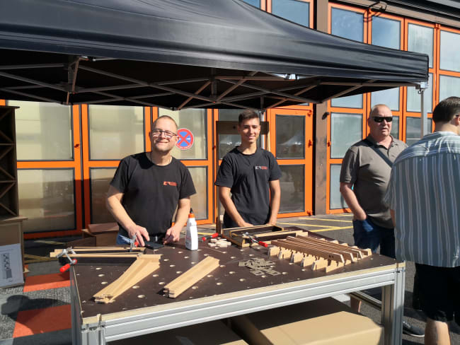 Ausbilder Carsten Birkenfeld zeigte Projekte aus der Holzmechaniker-Ausbildung; derzeit werden neun Nachwuchskräfte in drei Jahren zum Berufsabschluss geführt. Ebenso konnten die Exponate der Abschlussarbeiten (u. a. Präsentationsregal, drehbarer Couchtisch, Garderobenschrank) bestaunt werden. Interessierte erhielten Informationen zu Einstiegsmöglichkeiten und Karrierewegen. König + Neurath bildt seit Jahrzehnten erfolgreich in den unterschiedlichsten gewerblichen und kaufmännischen Ausbildungsberufen aus. König + Neurath stärkt so junge Talente und schafft interessante Perspektiven in einem sicheren Arbeitsumfeld.