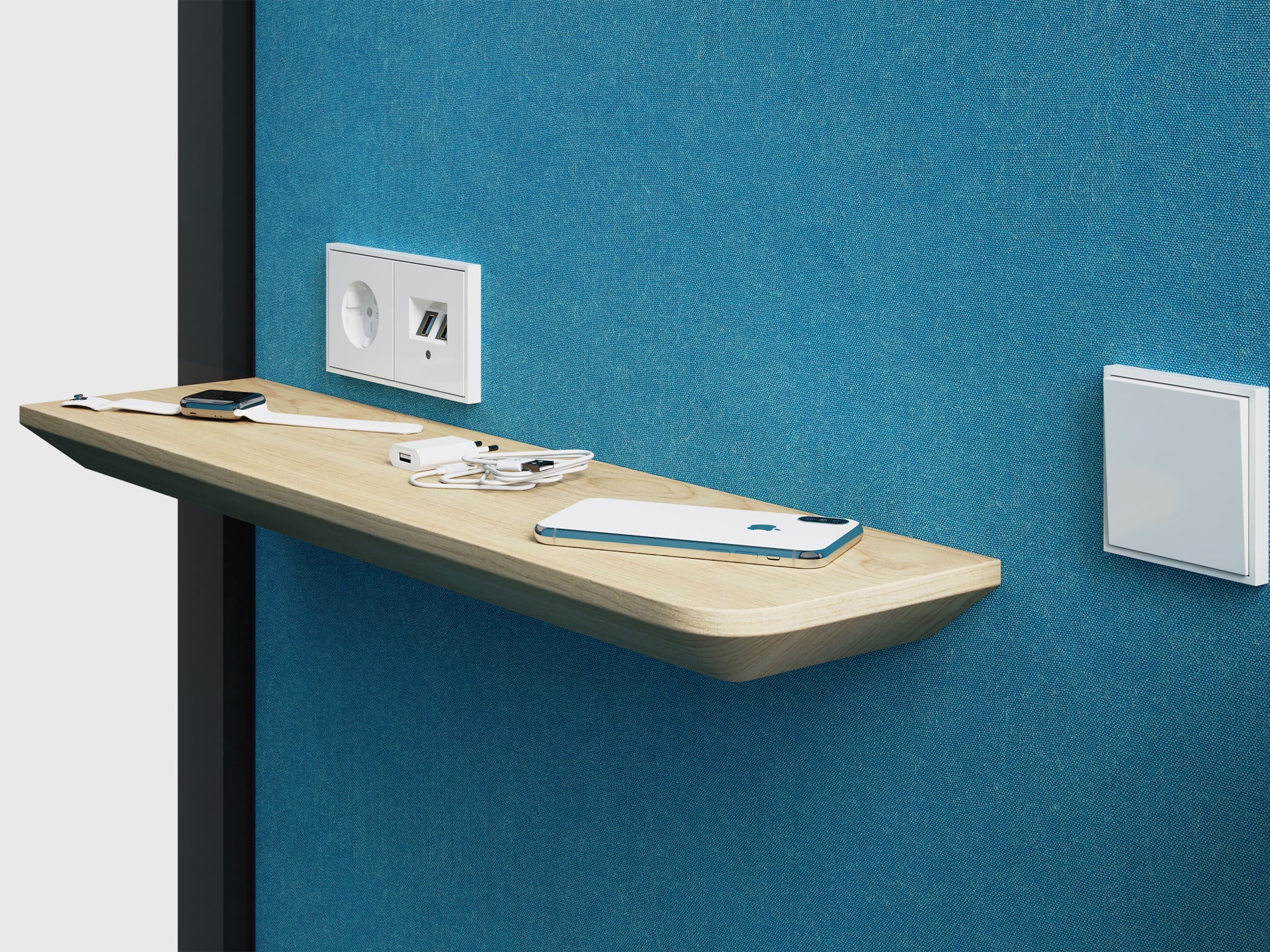 Wir liefern die akustisch wirksame QUIET.BOX inklusiv Belüftung, Beleuchtung und Stromanschluss. Sie fügt sich überall, selbst in Durchgangsbereichen, harmonisch ein.