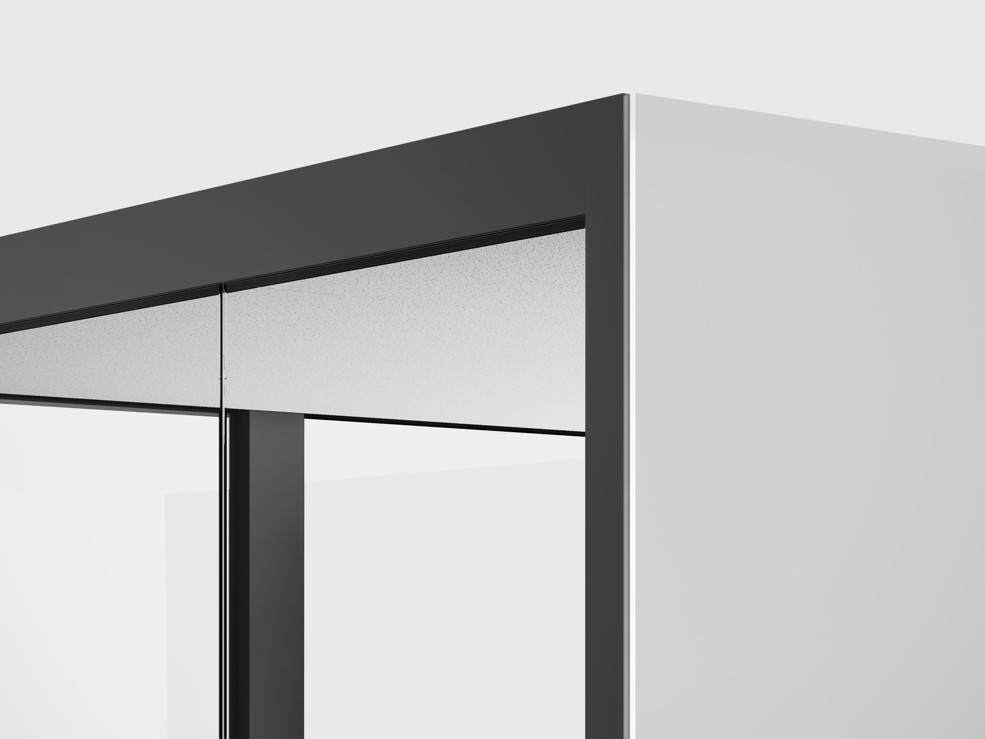 mit transparentem Glasstoß, Schiebetür mit durchgehender Schiebetür-Griffleiste, Alu eloxiert.