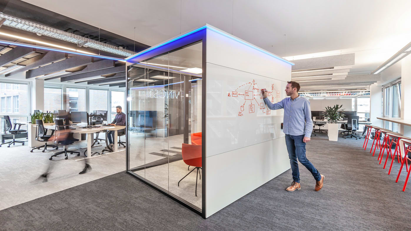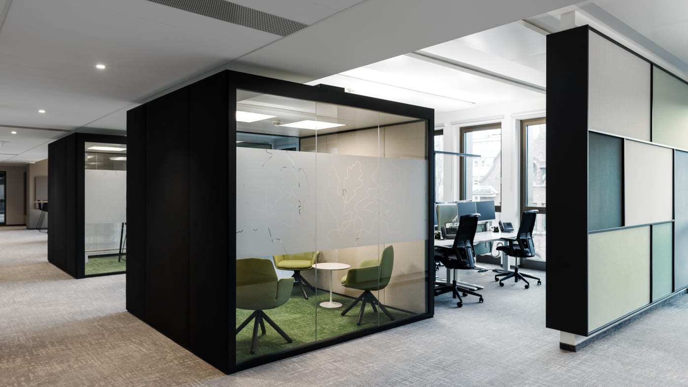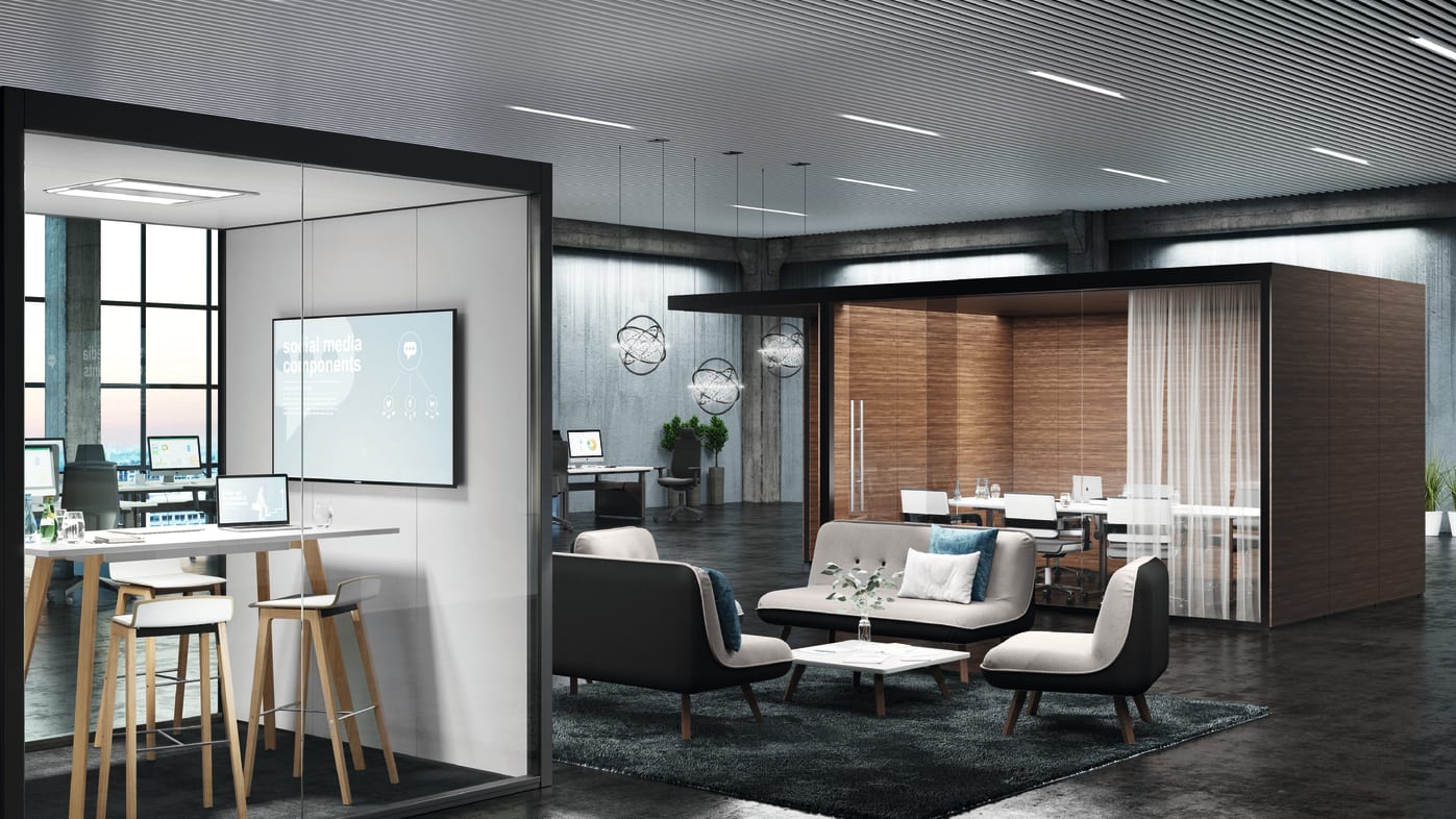 Die Anordnung der Glas- und Wandflächen ist frei wählbar. Durch eine große Auswahl von Materialien und Designs können Sie individuelle Gestaltungsmöglichkeiten nutzen und Ihrem Corporate Design bzw. Ihrer Arbeitskultur anpassen.