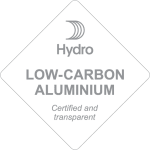 Nachhaltiger Effekt: Aluminium-Profile stammen aus 25 % aus Sekundärmaterial, produziert mit reduzierter CO2-Emission. Zertifiziert nach Hydro Low Carbon Aluminium.