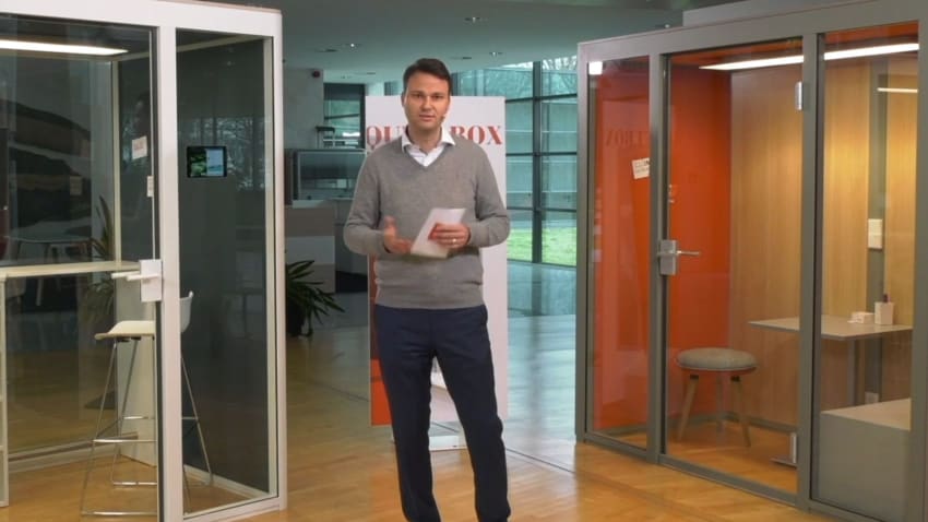 Room-in-room solutions allow more freedom for space planning – QUIET.BOX Duo XL (video presentation includes outfitting variants and assembly as a time lapse sequence).