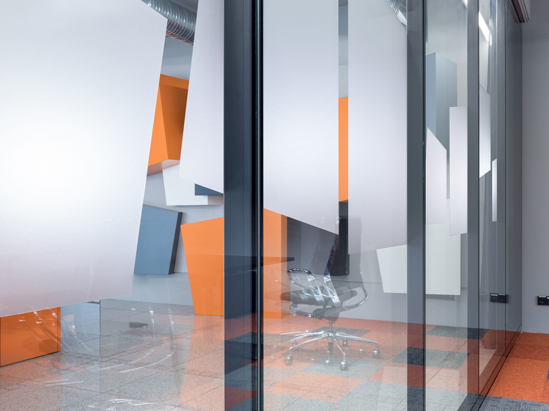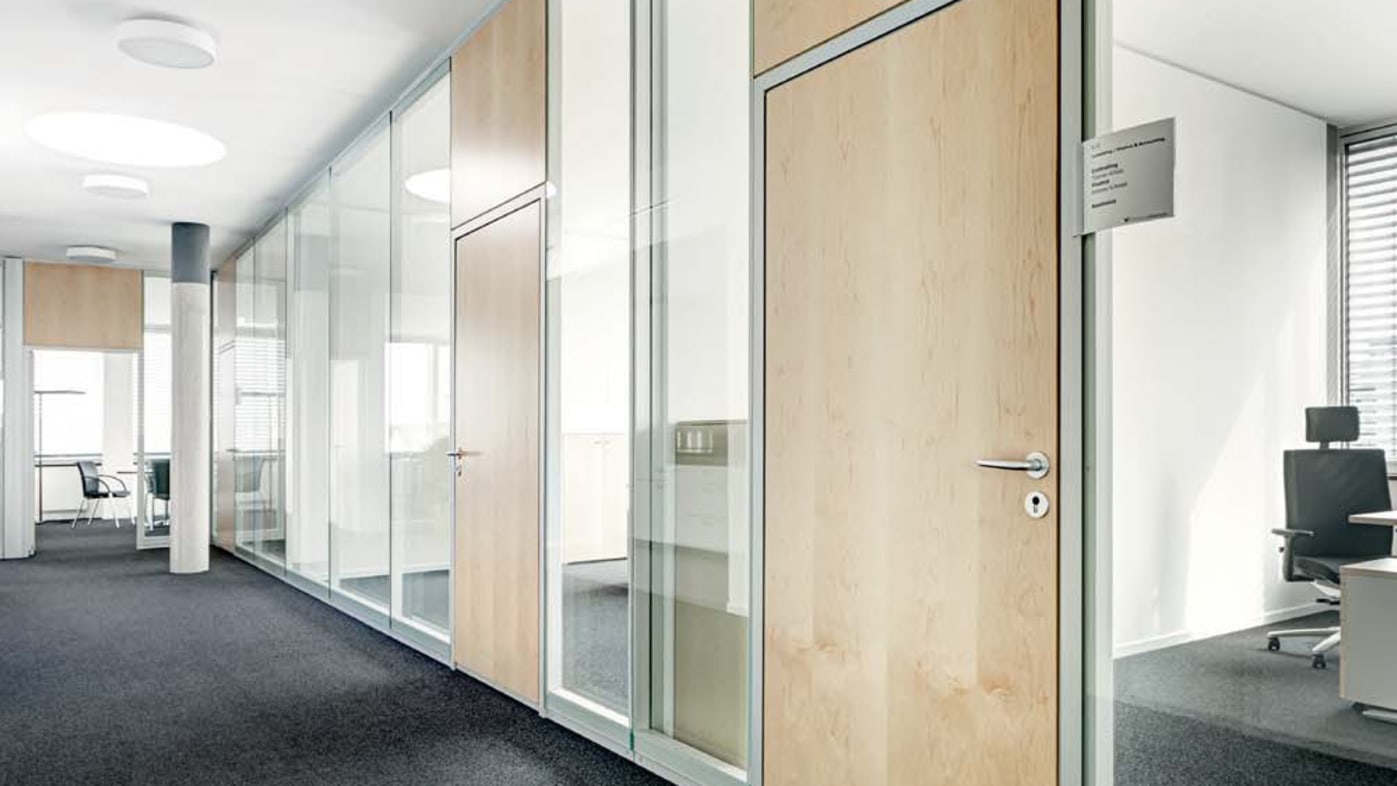 Frameless glazed architecture comes right into the interior structure, optimum acoustic insulation up to 45 dB with slimline wall panels.