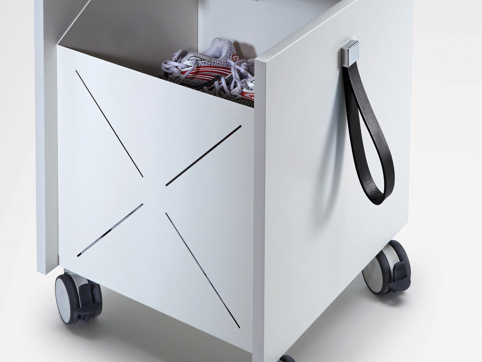 Mobile storage with horizontal tambours and four standardized different furniture types.