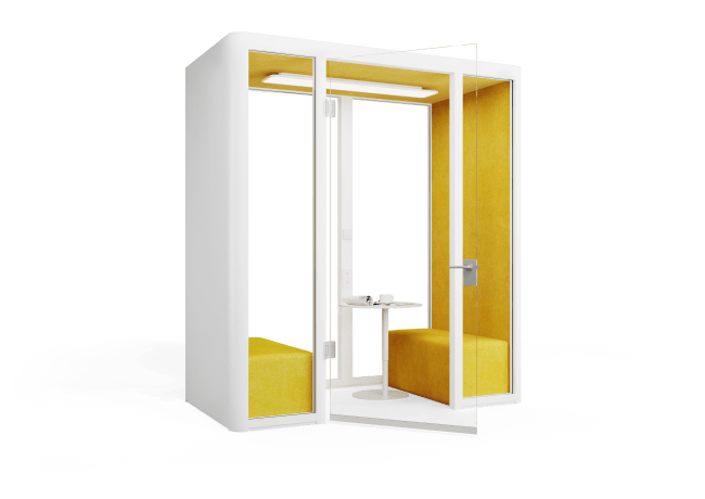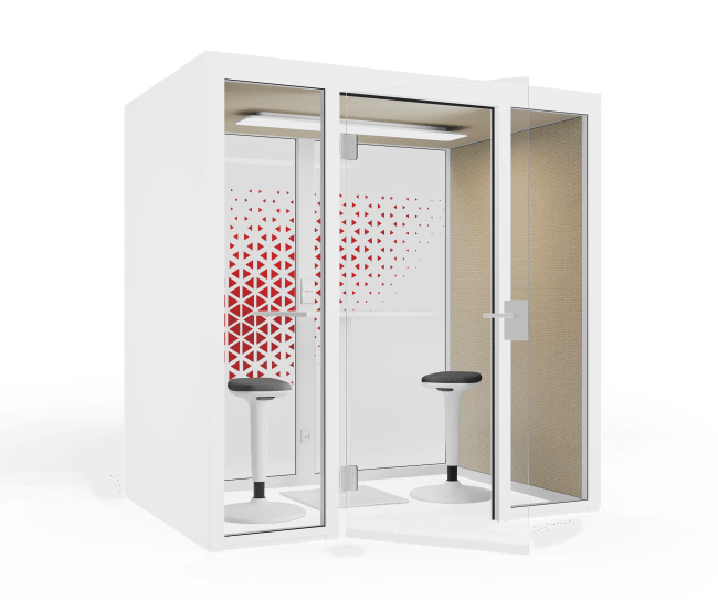La QUIET.BOX Duo fonctionne sur le même principe que la TALK.BOX. "Cette boîte plus grande a été conçue pour les réunions courtes en tête-à-tête ou le travail concentré", explique le directeur des ventes. Comme les petites boîtes téléphoniques, la QUIET.BOX Duo est autonome et équipée d'un système de ventilation innovant. Pour cela, elle n'a besoin que d'un raccordement électrique. Elle peut être équipée de différents types de mobilier, par exemple des bancs et une table. La paroi arrière en vitrage acoustique crée une agréable sensation d'espace. La sensation est encore plus confortable à l'intérieur, avec des parois intérieures et une surface de plafond recouvertes de tissu.