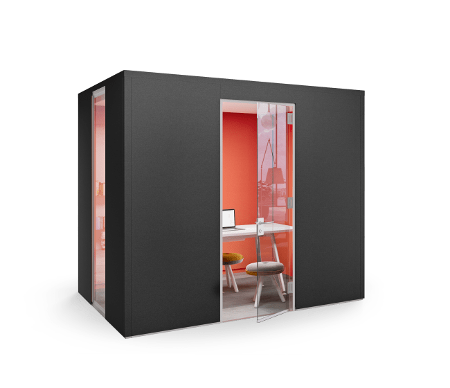 L'intérieur de la QUIET.BOX Duo XL est un peu plus profond que celui de la variante précitée, ce qui permet d'accueillir plus de personnes. Comme cette dernière, cette box est rapidement prête à l'emploi, marque des points avec de nombreuses possibilités de configuration et offre une entrée "sans barrière". Tous les box König + Neurath sont disponibles dans la version "Organic", d'apparence globalement plus organique, avec des courbes élégantes ou avec des arêtes architecturales nettes en version standard.