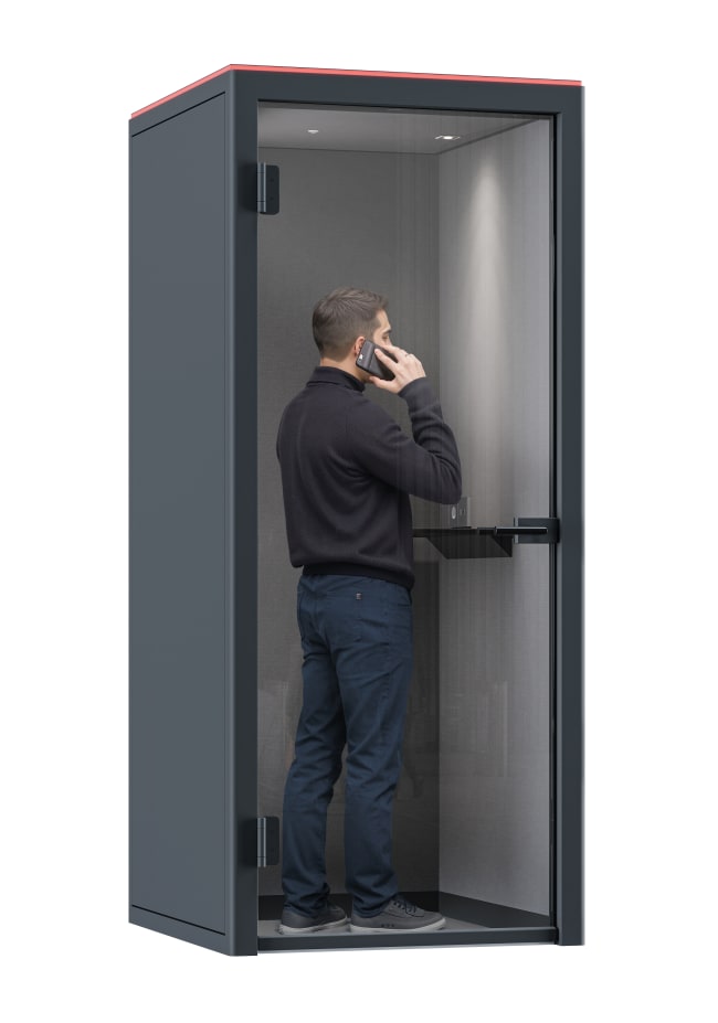 "Vous pouvez facilement placer la cabine téléphonique QUIET.BOX dans l'open space et dans les zones de communication, là où vous avez besoin d'un endroit insonorisé pour les conversations", explique Peter Heimann. La pièce dans l'espace de König + Neurath, qui ne mesure également qu'un mètre carré, est basée sur la même idée que la TALK.BOX, mais c'est le seul modèle fabriqué en bois. "Nous possédons une grande expertise de fabrication avec ce matériau durable", explique le directeur des ventes. "Nous montons tous les composants tels que l'isolation, l'éclairage, la ventilation et l'électricité dès l'usine, de sorte que la salle de retraite est prête à l'emploi 30 minutes seulement après la livraison". En cas de besoin, elle peut être déplacée à tout moment par des moyens simples si la configuration de la pièce devait à nouveau changer.