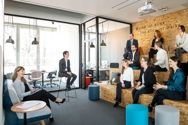 Ruimten voor gezamenlijk werken en voor brainstormsessies, maar ook stiltewerkplekken: de nieuwe werkomgeving van de firma GMK Markenberatung is zodanig vormgegeven dat zij voor de manier van werken en de arbeidsprocessen van het uit ca. 20 personen bestaande team optimale voorwaarden biedt. De GMK ontwikkelde het design van het kantoor in nauwe samenwerking met König + Neurath. Het belangrijkste hulpmiddel in het planningsproces: de WORK.CULTURE.MAP, waarmee zowel de uitgangspositie alsook het doelbeeld van de eigen arbeidscultuur zijn geanalyseerd en gevisualiseerd. De medewerkers beoordeelden hiervoor zeven aspecten die de eigen arbeidscultuur beschrijven, bijvoorbeeld of je op het gebied van flexibiliteit liever stabiel of liever dynamisch wilt werken, of ‘work’ en ‘life’ duidelijk van elkaar gescheiden zijn of juist nauw met elkaar verbonden.