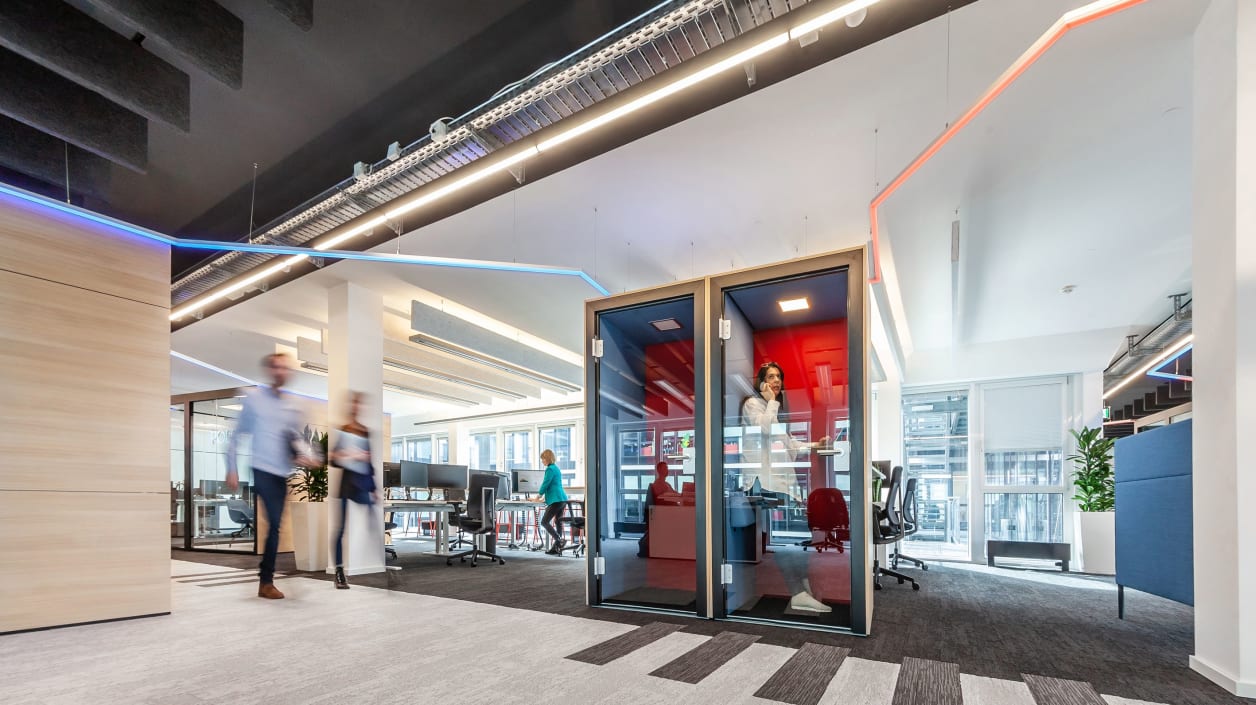 De twee grootste uitdagingen bij de herinrichting van de kantoorruimten van de firma NetCologne IT Services GmbH zijn volgens binnenhuisarchitect Guido Ebbert van het Hannoverse adviesbureau if5 design het krappe tijdsbestek van het project en de bijzondere akoestische situatie: “Bij het begin van de planning in het voorjaar stond vast dat het nieuw te creëren, open en transparante kantoorlandschap aan het eind van het jaar zou moeten worden opgeleverd.”