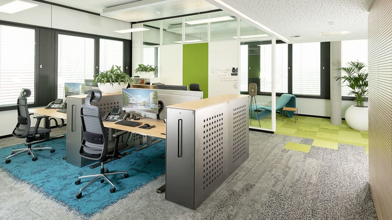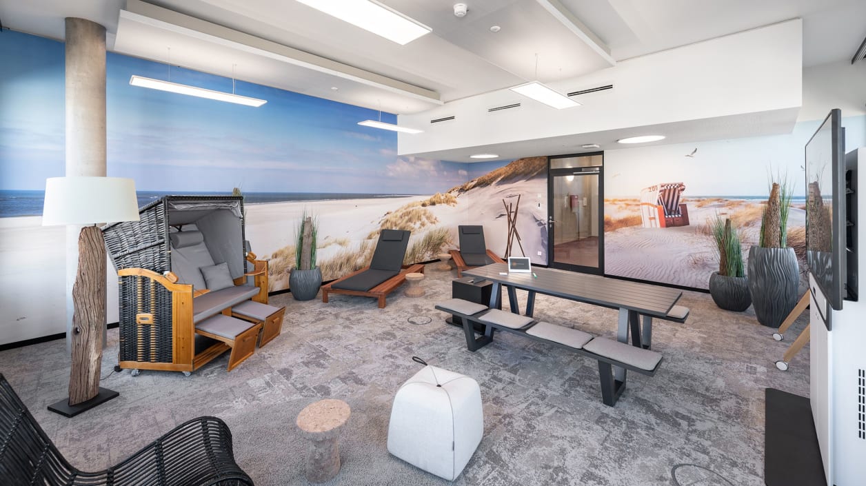 Ook al wordt het meubilair voortdurend kritisch bekeken en kunnen we de meubilering in nieuwe bouwfasen steeds weer aanpassen, we zijn met onze huidige keuze van het meubilair meer dan tevreden”, aldus de binnenhuisarchitecte. Momenteel wordt gebruik gemaakt van TALO.S motortafels in de Urban Style, TENSA.NEXT, vergadertafels in trapeziumvorm, NET.WORK.PLACE Organic, LIFE.S Indoor en nog veel meer, deels speciaal op wens van de klant gemaakte meubels. “Deze veelzijdigheid weerspiegelt zowel New-Work-trends als de wensen en behoeften van de werknemers.” Jenny Gros: “Wij willen dat de medewerkers zich prettig voelen. Daarom hebben we van tevoren in gezamenlijke workshops uitgewerkt wat voor hen belangrijk is.”