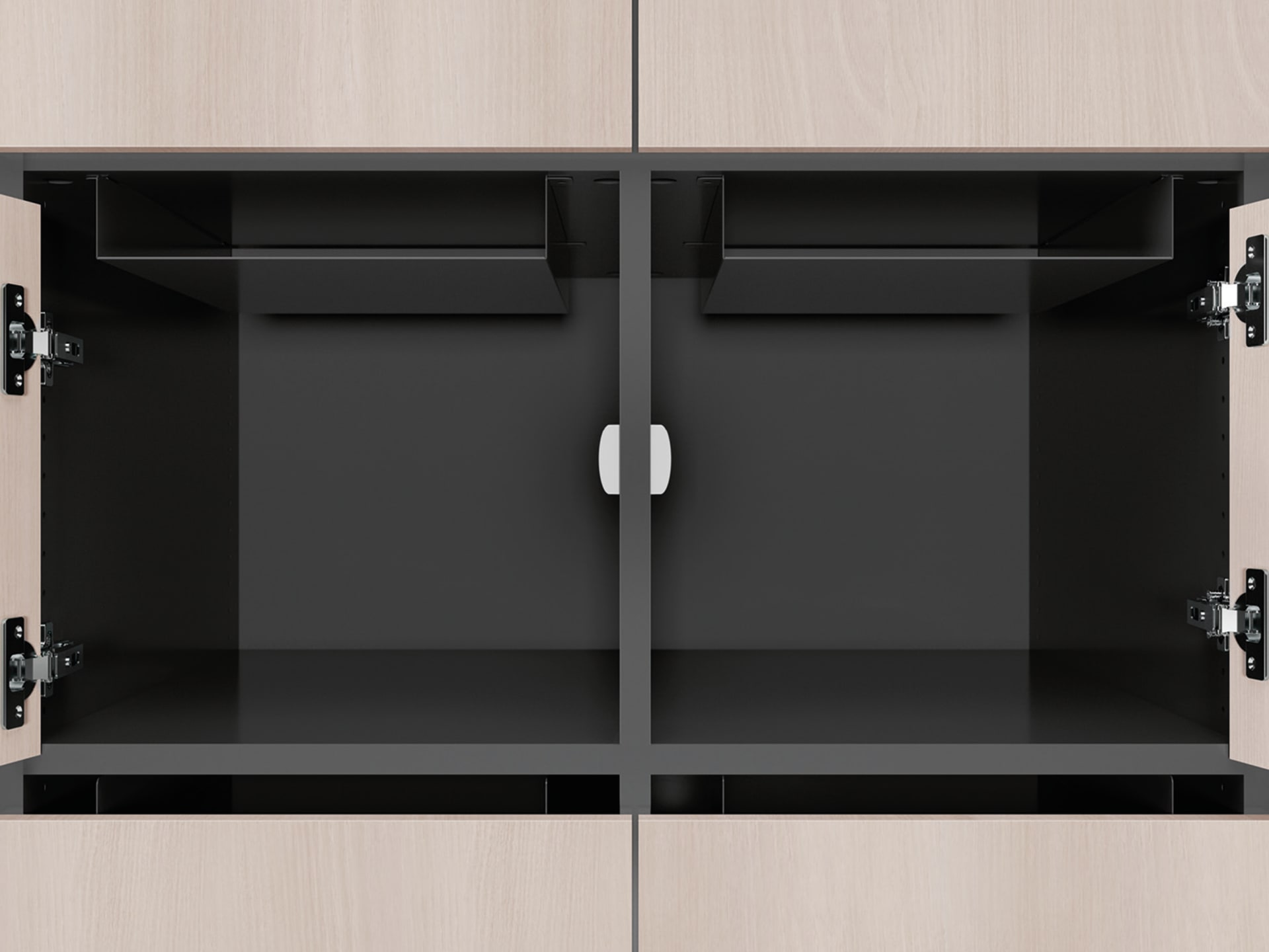 Bij een corpusbreedte van 800 mm beschikt de kast optioneel over een tussenwand. De deuraanslag kan links of rechts worden geplaatst.